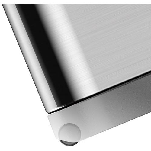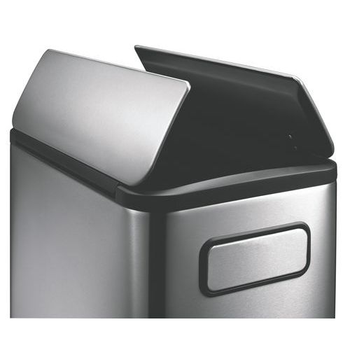 Elegancko zaprojektowany kosz do segregacji odpadów ze szczotkowanej stali nierdzewnej z wykończeniem zapobiegającym pozostawianiu odcisków palców, wyposażony w 2 plastikowe wkłady (2 x 20 l).