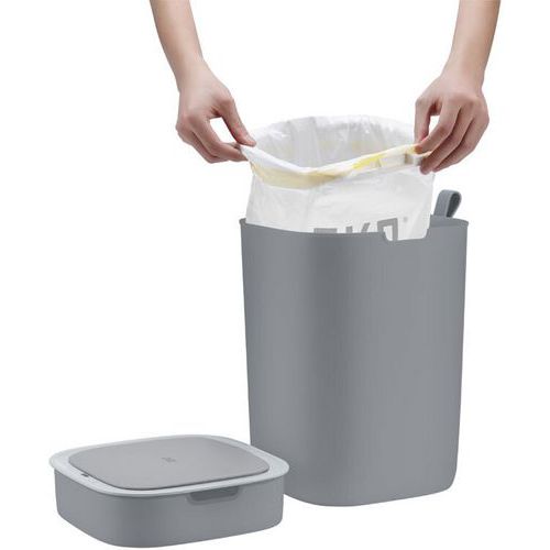 - Pierścień uszczelniający wokół pokrywy zapobiega wydostawaniu się nieprzyjemnych zapachów z kosza.