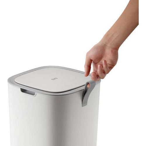 - Pierścień uszczelniający wokół pokrywy zapobiega wydostawaniu się nieprzyjemnych zapachów z kosza.