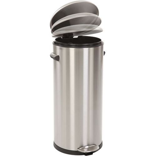 Kosz na pedały Retro Look z designerskimi uchwytami i kopułową pokrywą. Plastikowa wyściółka i ciche zamknięcie.