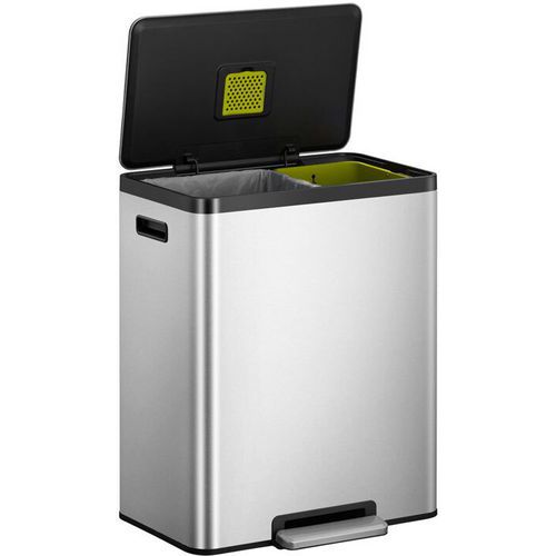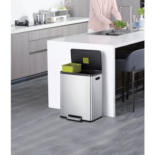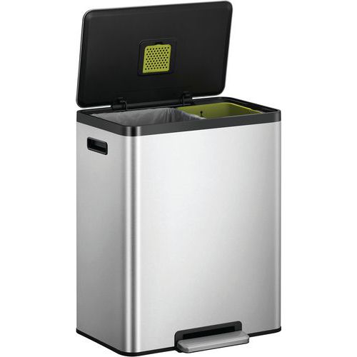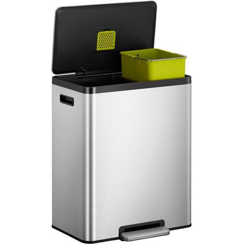 Wyposażony w miękko zamykającą się pokrywę ze zintegrowanym filtrem zapachów i dwie syntetyczne wkładki (36+24L) do segregacji odpadów.