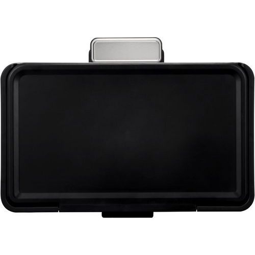 Prostokątny pedałowy kosz na śmieci ze szczotkowanej stali nierdzewnej z wykończeniem zapobiegającym pozostawianiu odcisków palców i plastikową pokrywą.