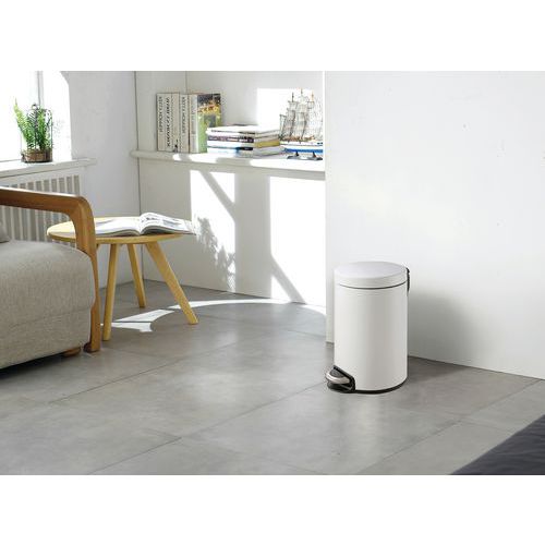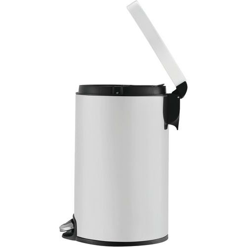 - Prosty kosz z pedałem z eleganckim pedałem, cicho zamykaną pokrywą i plastikową wkładką.