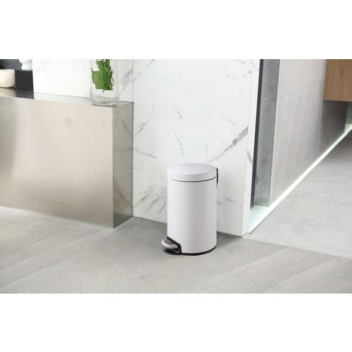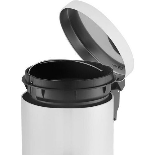 - Prosty kosz z pedałem z eleganckim pedałem, cicho zamykaną pokrywą i plastikową wkładką.