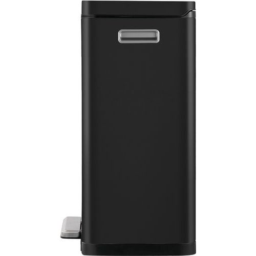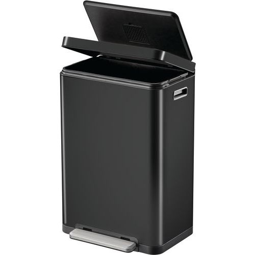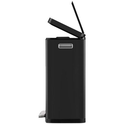 - Elegancki prostokątny kosz na śmieci z bardzo szerokim pedałem, plastikową wkładką, cicho zamykającą się pokrywą i funkcją stałego otwarcia.