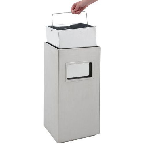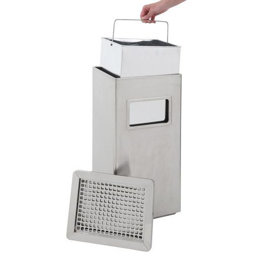 - Prostokątna popielniczka na odpady z metalu lub stali nierdzewnej z wkładką ze stali ocynkowanej.