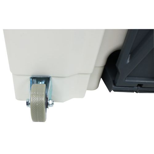 Pojemniki na pedały z pokrywką zatrzymującą nieprzyjemne zapachy. Pojemność 90 litrów. Mocny, nieporowaty pojemnik z tworzywa sztucznego. Zaokrąglone rogi i gładka powierzchnia ułatwiają czyszczenie i dezynfekcję. Wyjątkowo trwały i cichy pedał. Dostępny w kilku wersjach kolorystycznych.