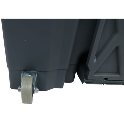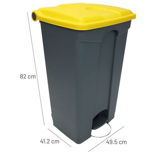 Pojemniki na pedały z pokrywką zatrzymującą nieprzyjemne zapachy. Pojemność 90 litrów. Mocny, nieporowaty pojemnik z tworzywa sztucznego. Zaokrąglone rogi i gładka powierzchnia ułatwiają czyszczenie i dezynfekcję. Wyjątkowo trwały i cichy pedał. Dostępny w kilku wersjach kolorystycznych.