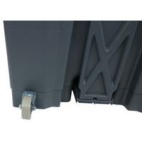 Pojemniki na pedały z pokrywką zatrzymującą nieprzyjemne zapachy. Pojemność 90 litrów. Mocny, nieporowaty pojemnik z tworzywa sztucznego. Zaokrąglone rogi i gładka powierzchnia ułatwiają czyszczenie i dezynfekcję. Wyjątkowo trwały i cichy pedał. Dostępny w kilku wersjach kolorystycznych. Gwarancja producenta dla klienta : 10 lat