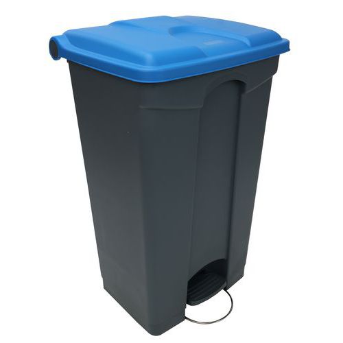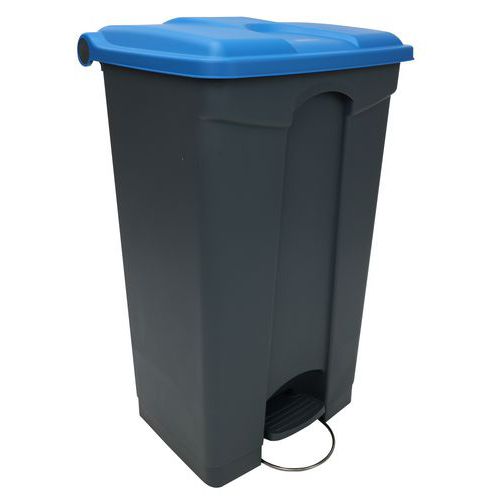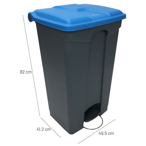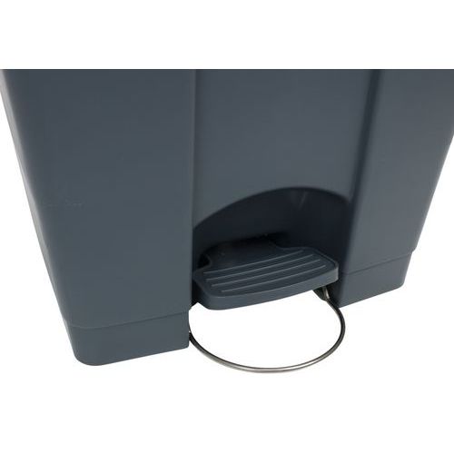Pojemniki na pedały z pokrywką zatrzymującą nieprzyjemne zapachy. Pojemność 90 litrów. Mocny, nieporowaty pojemnik z tworzywa sztucznego. Zaokrąglone rogi i gładka powierzchnia ułatwiają czyszczenie i dezynfekcję. Wyjątkowo trwały i cichy pedał. Dostępny w kilku wersjach kolorystycznych.