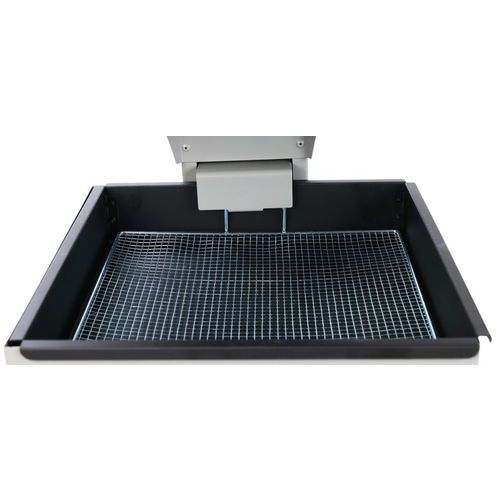 Z czarną tacką ociekową i chromowanym sitkiem.