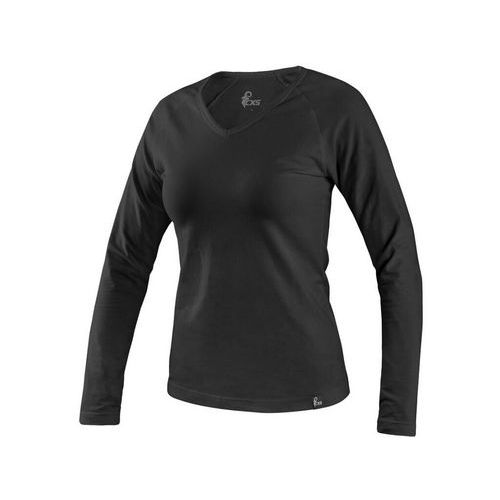 Koszulka CXS MARY, damska, V dekolt, długi rękaw, kolor czarny