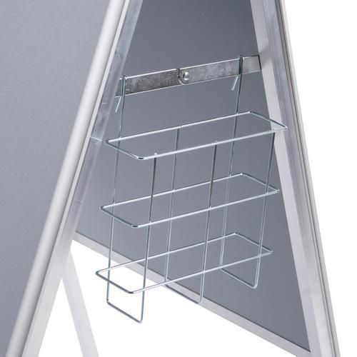 Druciane koszyki na prospekty reklamowe i ulotki. Nadają się jako akcesoria do stojaków reklamowych typu A o profilu 32 i 25 mm. Możliwość umieszczenia w przestrzeniach wewnętrznych i zewnętrznych dzięki ocynkowanej powierzchni.