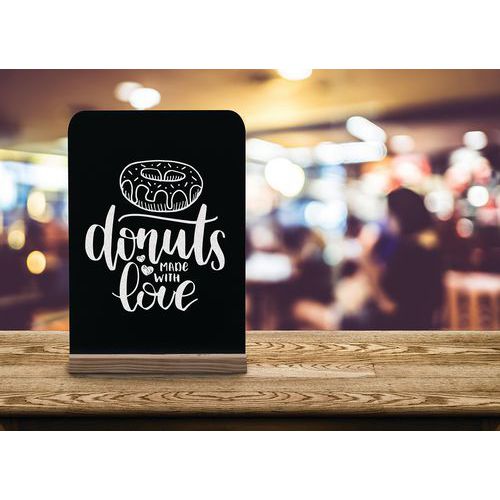 - Tablice dwustronne czarne ze stojakami wykonanymi z drewna sosnowego. Idealny do ofert promocyjnych lub menu. Zaokrąglone krawędzie. Format A4 lub A5.