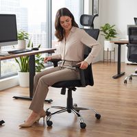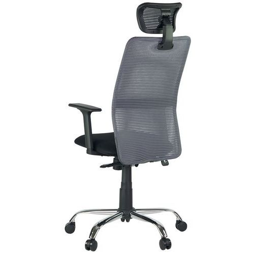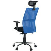 Krzesła biurowe wyposażone są w siatkowe oparcie oraz wygodne, tekstylne siedzisko z mechanizmem bujania i metalowym krzyżakiem.