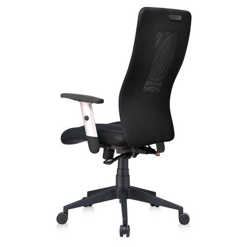 Krzesła biurowe wyposażone w anatomicznie wyprofilowane siedzisko i wysokie siatkowe oparcie. Mechanizm synchroniczny można zablokować w dowolnie wybranej pozycji. Możliwość ustawienia siły przeciwwagi oparcia, wysokości siedziska i wysokości podłokietników. Krzesło jest wyposażone w uniwersalne kółka do podłóg twardych i dywanów. Możliwość dokupienia regulowanego zagłówka.