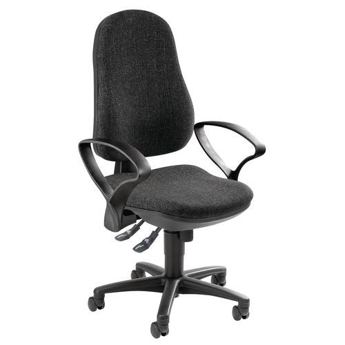 - Oparcie ze zintegrowanym podparciem lędźwiowym umożliwia regulację pozycji roboczej.