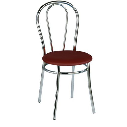 Tapicerowane krzesło do jadalni składające się ze wzmocnionej konstrukcji stalowej i wygodnego siedziska z wysokogatunkowej skóry syntetycznej w różnych wersjach kolorystycznych. Długotrwały estetyczny wygląd metalowych części gwarantowany dzięki ich chromowaniu. Kolejna zaletą jest łatwe składowanie dzięki możliwości układania krzeseł w stosy. Krzesła przeznaczone do jadalni, kawiarni i użytku domowego. Paczkowane. Nośność tego nowoczesnego krzesła wynosi 110 kg.