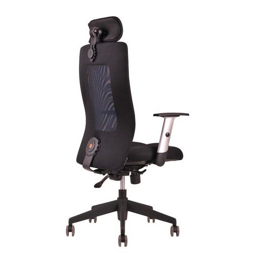 Nowoczesne krzesło biurowe z mechanizmem synchronicznym i przewiewną siatkową powierzchnią pozwalającą plecom oddychać przez cały dzień. Oparcie ma ponadstandardową wysokość, a jego zaletą jest anatomicznie wyprofilowany kształt. Siedzisko fotela biurowego wykonano z zimnej pianki gwarantującej wysoką żywotność i zachowanie anatomicznego kształtu siedziska. Możliwość ustawienia wysokości siedziska, jak również blokowania położenia siedziska i oparcia. Krzesła obrotowe są wyposażone w kółka z miękką powierzchnią odpowiednie do podłóg twardych i wykładzin dywanowych. Wybór z siedmiu wersji kolorystycznych. Nośność tego krzesła obrotowego wynosi 130 kg. Możliwość dokupienia zagłówka.
