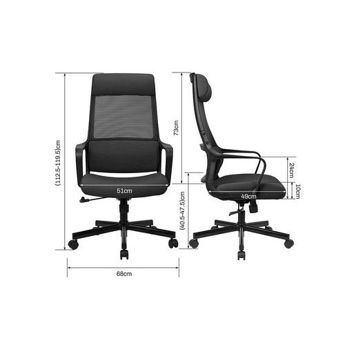 - Wysokość całkowita krzesła wynosi 112,5–119,5 cm.