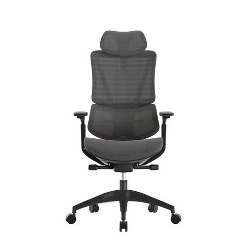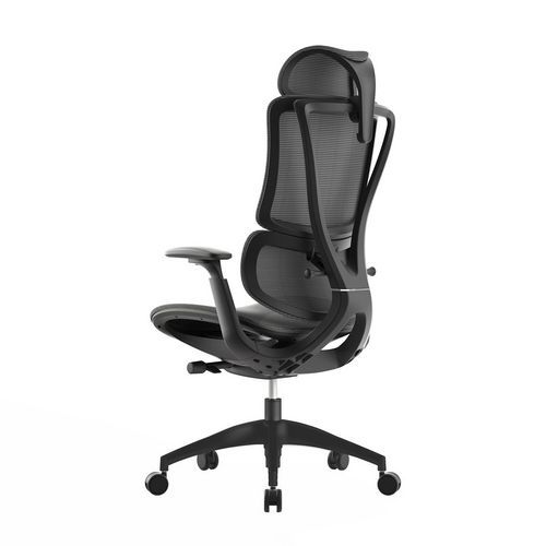 - Krzesło biurowe z samonośną siatką na siedzisku, oparciu i zagłówku.