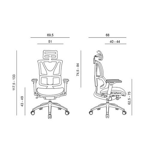 - Podłokietniki 4D z regulacją wysokości i miękką w dotyku powierzchnią regulowaną wzdłużnie, kątowo i wszerz.
