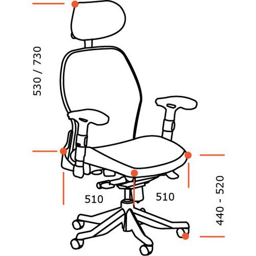 Podłokietniki z regulacją wysokości: Wysokość podłokietników można ustawić za pomocą mechanizmu z funkcją blokady (mechaniczna blokada położenia) lub za pomocą mechanizmu zapadkowego.