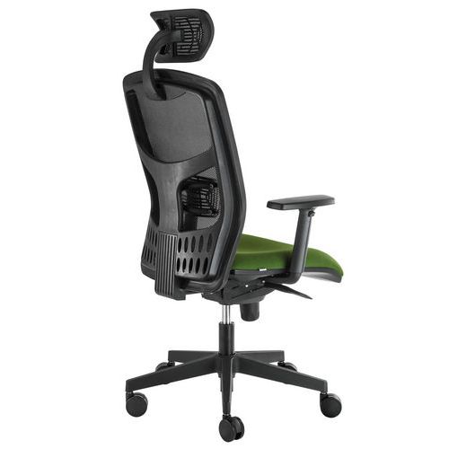 - Nowoczesny, tapicerowany fotel biurowy z mechanizmem synchronicznym i możliwością ustawienia siły przeciwwagi oraz blokowania w pięciu położeniach.