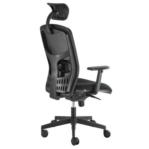 - Nowoczesny, tapicerowany fotel biurowy z mechanizmem synchronicznym i możliwością ustawienia siły przeciwwagi oraz blokowania w pięciu położeniach.