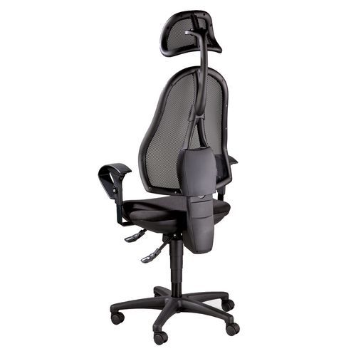 Mechanizm synchroniczny: Zapewnia nieprzerwany kontakt siedziska i oparcia z plecami użytkownika. Siedzisko i oparcie krzesła przechyla się z zachowaniem stałego położenia względem siebie, zapewniając dobrą ergonomię siedzenia we wszystkich odchyleniach. Ruch mechanizmu można mechanicznie zatrzymać w wybranej pozycji. Siłę nacisku i wysokość siedziska użytkownik reguluje sam.
