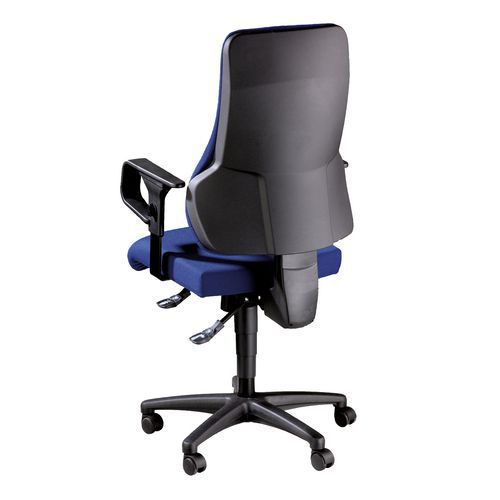 Komfortowe krzesło biurowe z solidnym mechanizmem synchronicznym dającym możliwość regulacji według wagi użytkownika. Wygodę siedzenia gwarantuje ergonomicznie wyprofilowane siedzisko i oparcie. Wysokość oparcia użytkownik dobiera sam. Nośność krzesła wynosi 120 kg.