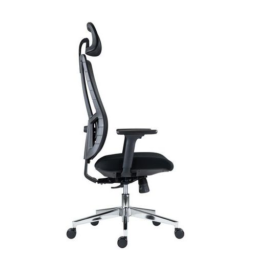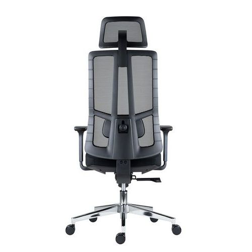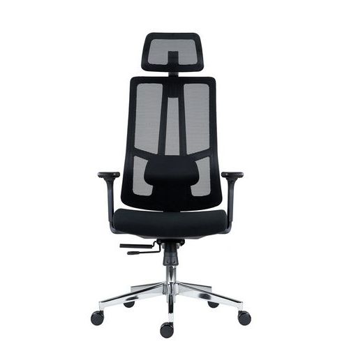 Krzesło biurowe Ruben z siatką na oparciu oraz zagłówku.