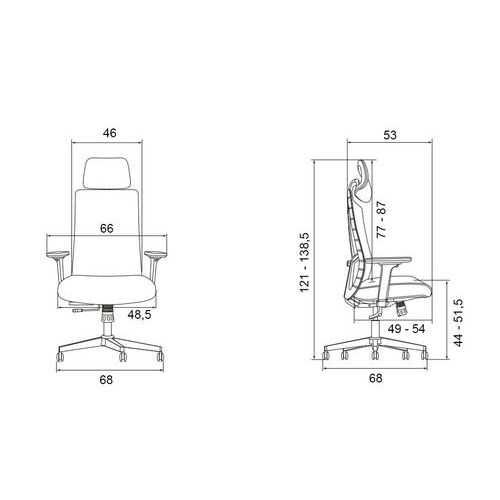 Na wyposażeniu krzesła znajduje się zagłówek z regulacją wysokości i nachylenia.