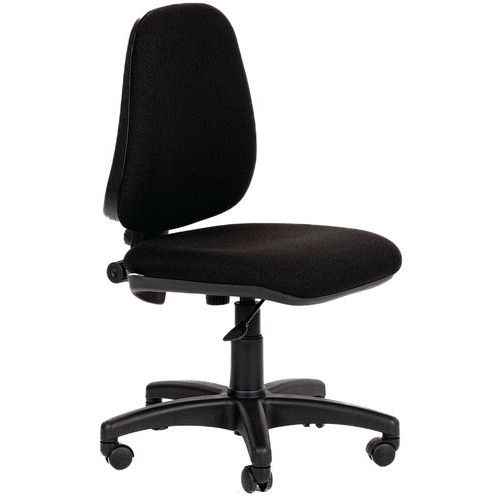Tapicerowane krzesła biurowe z mechanizmem zapewniającym stały kontakt pleców z oparciem. Możliwość zablokowania odchylonego oparcia lub stałego nacisku oparcia na plecy według potrzeb użytkownika. Wysokość siedziska można zmieniać za pomocą podnośnika pneumatycznego. Krzesła zostały również wyposażone w pięcioramienny plastikowy stelaż obrotowy z kółkami przeznaczonymi do miękkich wykładzin. Oparcie krzesła daje możliwość ustawienia głębokości i wysokości. Możliwość wyboru z sześciu wersji kolorystycznych. Nośność tego krzesła obrotowego wynosi 110 kg.