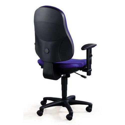 Tapicerowane krzesło biurowe z profilowanym oparciem i zintegrowaną podpórką lędźwiowego odcinka kręgosłupa, z możliwością regulacji wysokości za pomocą mechanizmu zapadkowego. Zaletą jest wygodne, ergonomicznie wyprofilowane siedzisko i synchroniczny mechanizm umożliwiający płynne ustawianie wzajemnego położenia siedziska i oparcia, włącznie z wysokością siedziska. Możliwość ustawienia siły reakcji oparcia w zależności od masy ciała osoby siedzącej. Krzesła obrotowe są wyposażone w bezpieczne, podwójne kółka do podłoży miękkich, hamowane w zależności od obciążenia. Dostępne w trzech wariantach kolorystycznych. Nośność tego krzesła obrotowego wynosi 120 kg.