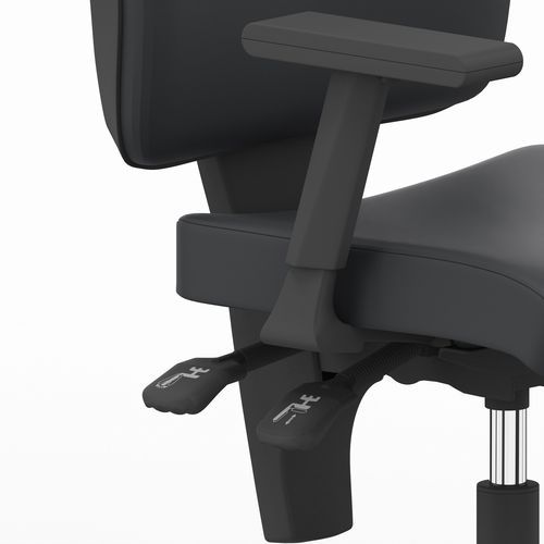 Podłokietniki z regulacją wysokości: Wysokość podłokietników można ustawić za pomocą mechanizmu z funkcją blokady (mechaniczna blokada położenia) lub za pomocą mechanizmu zapadkowego.