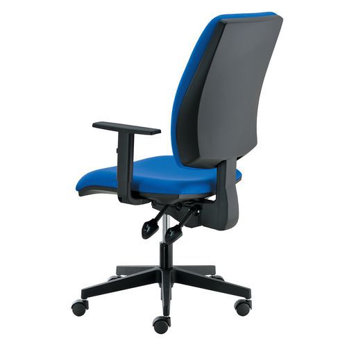 Wygodne fotele biurowe wyposażone w wysokie siedzisko i oparcie oraz asynchroniczny mechanizm z możliwością ustawienia kąta oparcia i siedziska. Ergonomicznie wyprofilowane oparcie wyposażono w system zapadkowy do regulacji wysokości. Wysokość siedziska fotela można zmieniać za pomocą podnośnika pneumatycznego. Krzesła obrotowe są wyposażone w podwójne kółka do miękkich powierzchni. Dostępne w trzech wariantach kolorystycznych. Nośność tego krzesła obrotowego wynosi 140 kg.