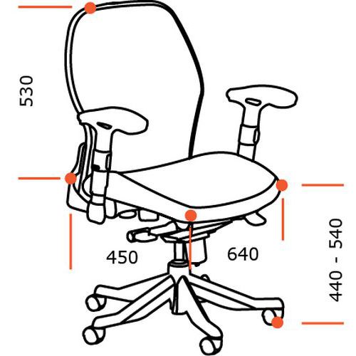 Mechanizm asynchroniczny: Rodzaj mechanizmu umożliwiający niezależne ustawianie kąta nachylenia siedziska i oparcia. Regulacja za pomocą trzech dźwigni (regulacja wysokości całego krzesła, regulacja nachylenia siedziska i oparcia z możliwością blokowania oraz regulacja odchylenia oparcia z możliwością blokowania).
