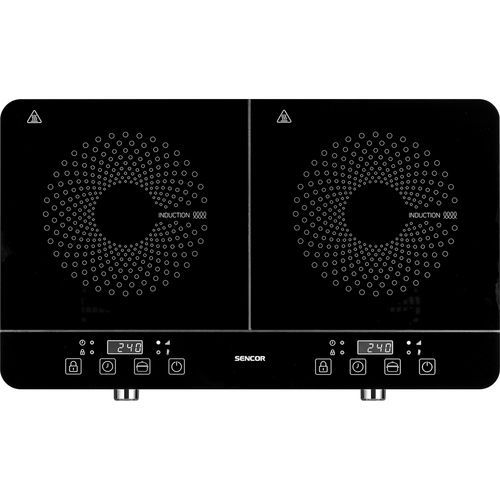 Kuchenka indukcyjna dwupalnikowa marki Sencor posiada dwa pola grzewcze o średnicy 26 cm, które są kompatybilne z naczyniami o średnicy 12–26 cm.
