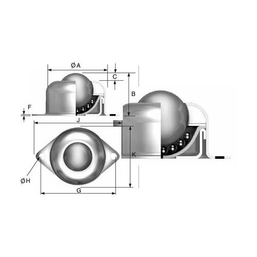 | Nazwa produktu | Kulowy element transportowy z dolnym kołnierzem, średnica 25,4 mm |