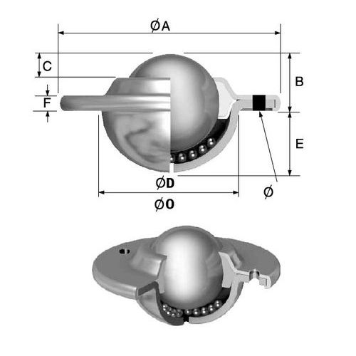| Nazwa produktu | Kulowy element transportowy z kołnierzem, średnica 25 mm |
