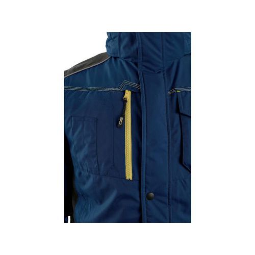 Kurtka męska ocieplana, odporna na działanie wody i wiatru, odpinany kaptur, mankiety wewnętrzne w rękawach, oczko plastykowe pod górną kieszeni, ściąganie na dole, klejone szwy, TPU membrana, elementy odblaskowe. Kieszenie na piersiach zapinane na n Velikost: S-4XL Montérková kolekce: CXS STRETCH Sezóna: Zimní