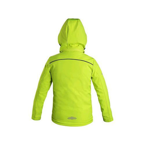 Dziecięca kurtka typu softshell z odpinanym kapturem, odporna na wodę i wiatr, elastyczne ściągacze w rękawach, ściągacz u dołu, kołnierz z polaru oraz wnętrze kurtki, 2 dolne kieszenie zapinane na zamek, kieszeń na piersi zapinana na zamek, elementy odblaskowe, membrana TPU, wodoodporność materiału (poza obszarem szwów i na zewnątrz materiału wokół kieszeni) 10 000 mm, przepuszczalność pary wodnej 3000 g/m2/24 godziny. Akcesoria odblaskowe: Tak Materiał wierzchni: 96% poliester, 4% elastan Wodoodporność: 10 000 mm Przepuszczalność pary wodnej: 3000 g/m2/24h Membrana TPU: TAK Rozmiar: 120-170
