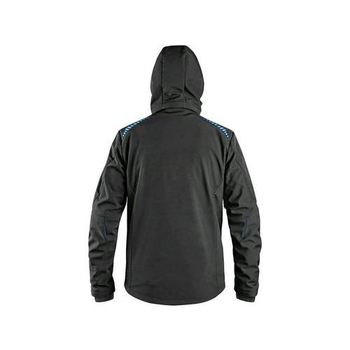 Męska kurtka softshell z odpinanym kapturem, wodoodporna i wiatroszczelna, zapinana na zamek błyskawiczny, wentylacja pod pachami, kieszeń na piersi zapinana na zamek, kieszenie boczne zapinane na zamek, wewnętrzne mankiety rękawów, ściągacz u dołu, elementy odblaskowe, membrana TPU. Wodoodporność materiału 8000 mm² poza szwem, paroprzepuszczalność 3000 g/m²/24 h.