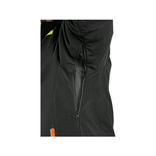 Męska ocieplana kurtka softshell z odpinanym kapturem, wodoodporna i wiatroszczelna, zapinana na zamek błyskawiczny, wentylacja pod pachami, kieszenie na piersi zapinane na zamek, wyjmowana przegroda na identyfikator w prawej kieszeni, kieszenie boczne zapinane na zamek, kieszenie wewnętrzne, wewnętrzne mankiety rękawów, ściągacz u dołu, elementy odblaskowe, membrana TPU, zamek błyskawiczny od wewnątrz do haftu. Wodoodporność materiału 8000 mm poza szwem, paroprzepuszczalność 3000 g/m²/24 h.