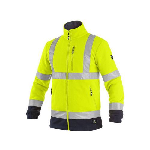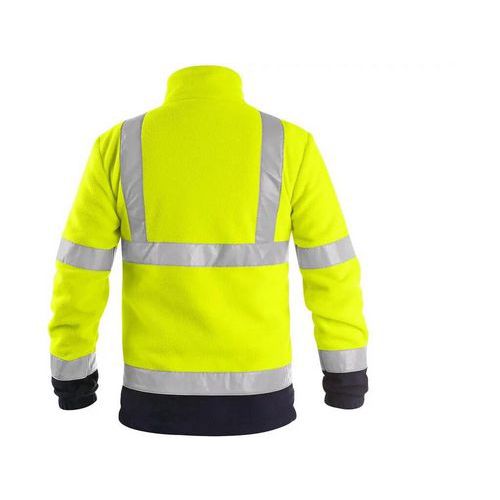 Męska kurtka polarowa o wysokiej widoczności z odblaskowymi paskami. Elastyczne rękawy, kieszenie boczne i na piersi zapinane na zamek, ściągacz u dołu, podszewka z siateczki.