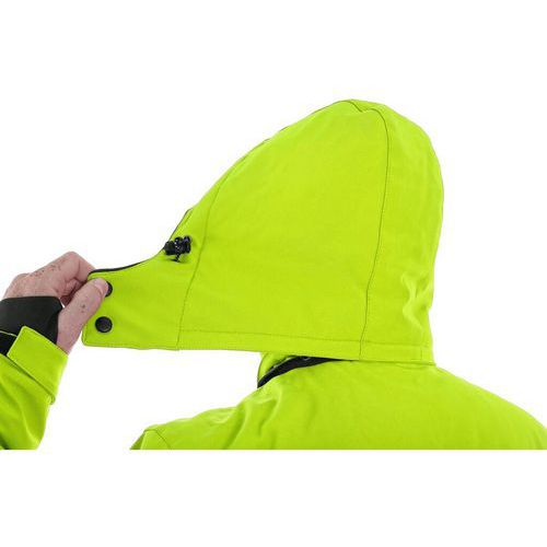 Męska kurtka softshellowa, wodoodporna, odporna na działanie wiatru, wentylacja pod pachami, odpinany kaptur, regulowane mankiety, mankiety wewnętrzne w rękawach, ściągacz w dolnej części, elementy odblaskowe, TPU membrana, odporność na przenikanie w
