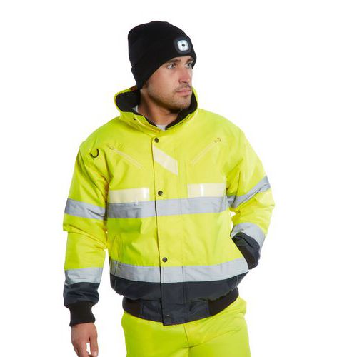 Kurtka typu bomber 3w1 wykorzystuje innowacyjną potrójną technologię Glowtex. Zapewnia doskonałą widoczność we wszelkich warunkach dzięki połączeniu tkaniny fluorescencyjnej taśmy odblaskowej HiVisTex i taśmy z fosforyzującej folii Glowtex która świeci w ciemności przy całkowitym braku jakiekolwiek źródła oświetlenia. Odpinana podszewka futrzana i kołnierz futrzany w połączeniu z wypinanymi rękawami sprawiają że jest to doskonale dopasowana odzież do wszelkich możliwych potrzeb użytkowników.