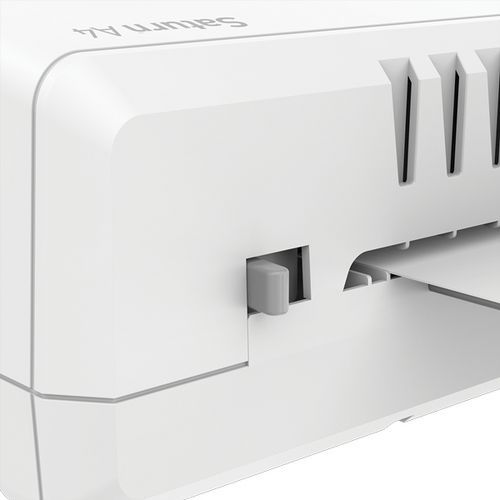- Jest wyposażony w unikalny system Jam Free, który znacznie zmniejsza ryzyko zakleszczenia laminowanego dokumentu wewnątrz urządzenia.