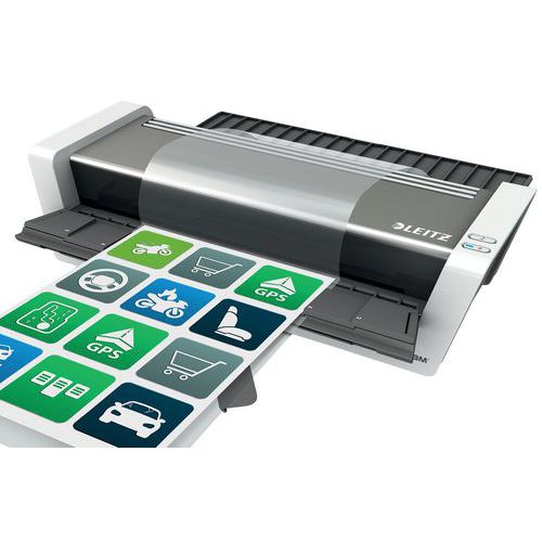 - Laminator iLam przeznaczony do częstego użytku i folia laminująca o grubości od 80 do 250 µm.